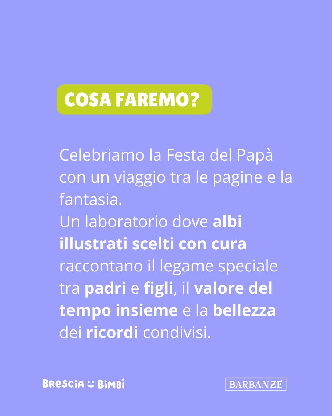 Un percorso narrativo ed esperienziale progettato per avvicinare i bambini alla lettura condivisa e valorizzare il tempo trascorso insieme in famiglia, in occasione della Festa del Papà .