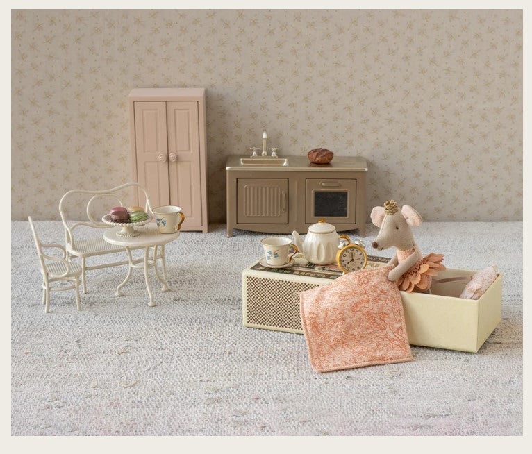Questo dolcissimo topolino è pronto per ore e ore di gioco, e quando arriva il momento di riposare si infila comodo comodo nella sua piccola scatola di fiammiferi per un sonnellino sereno.